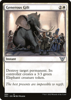 Destroy target permanent. Its controller creates a 3/3 green Elephant creature token.