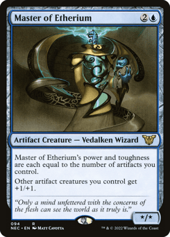 Master of Etherium's power and toughness are each equal to the number of artifacts you control. Other artifact creatures you control get +1/+1.
