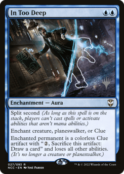 Split second (As long as this spell is on the stack, players can't cast spells or activate abilities that aren't mana abilities.) Enchant creature, planeswalker, or Clue Enchanted permanent is a colorless Clue artifact with "{2}, Sacrifice this artifact: Draw a card" and loses all other abilities. (It's no longer a creature or planeswalker.)