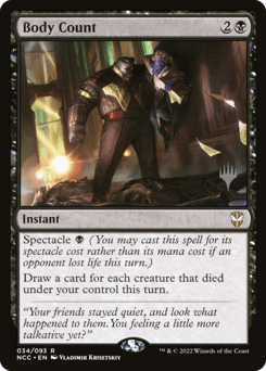 Spectacle {B} (You may cast this spell for its spectacle cost rather than its mana cost if an opponent lost life this turn.) Draw a card for each creature that died under your control this turn.
