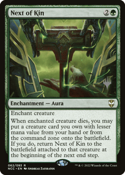 Enchant creature When enchanted creature dies, you may put a creature card you own with lesser mana value from your hand or from the command zone onto the battlefield. If you do, return this card to the battlefield attached to that creature at the beginning of the next end step.