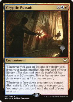 Whenever you cast an instant or sorcery spell from your hand, manifest the top card of your library. (Put that card onto the battlefield face down as a 2/2 creature. Turn it face up any time for its mana cost if it's a creature card.) Whenever a face-down creature you control dies, exile it if it's an instant or sorcery card. You may cast that card until the end of your next turn.