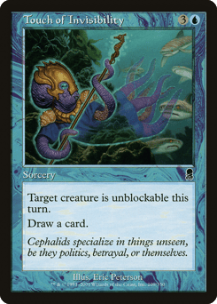 This creature can't be blocked. {U}, Discard a card: Return this creature to its owner's hand.