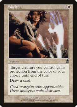 Target creature you control gains protection from the color of your choice until end of turn. Draw a card.