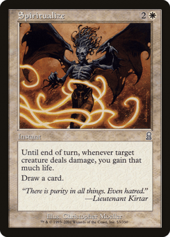 Until end of turn, whenever target creature deals damage, you gain that much life. Draw a card.