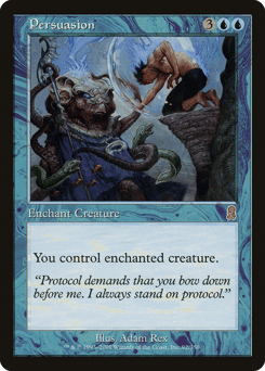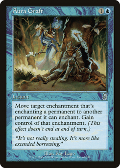 Gain control of target Aura that's attached to a permanent. Attach it to another permanent it can enchant.