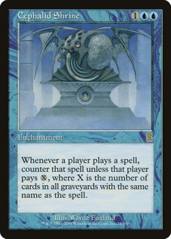Whenever a player casts a spell, counter that spell unless that player pays {X}, where X is the number of cards in all graveyards with the same name as the spell.