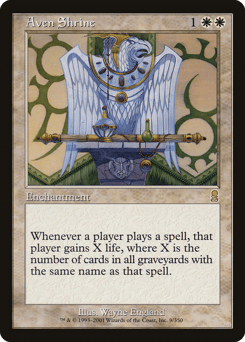 Whenever a player casts a spell, that player gains X life, where X is the number of cards in all graveyards with the same name as that spell.