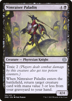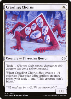 Toxic 1 (Players dealt combat damage by this creature also get a poison counter.) When this creature dies, create a 1/1 colorless Phyrexian Mite artifact creature token with toxic 1 and "This token can't block."