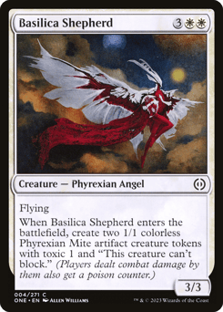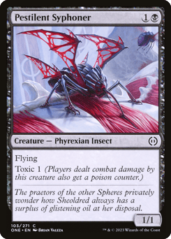 Flying When this creature enters, create two 1/1 colorless Phyrexian Mite artifact creature tokens with toxic 1 and "This token can't block." (Players dealt combat damage by them also get a poison counter.)