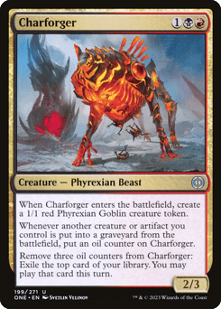 This creature enters with three oil counters on it. {T}, Remove an oil counter from this creature: Scry 1. (Look at the top card of your library. You may put that card on the bottom.)
