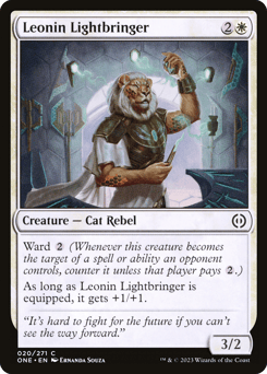 Ward {2} (Whenever this creature becomes the target of a spell or ability an opponent controls, counter it unless that player pays {2}.) As long as this creature is equipped, it gets +1/+1.