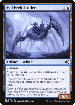 Vigilance This Vehicle enters with an oil counter on it. Remove an oil counter from this Vehicle: It becomes an artifact creature until end of turn. Crew 3 (Tap any number of creatures you control with total power 3 or more: This Vehicle becomes an artifact creature until end of turn.)