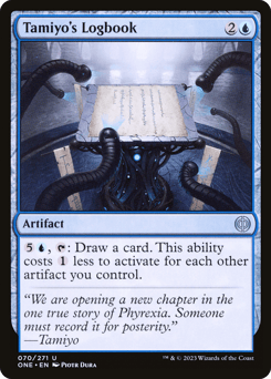 {5}{U}, {T}: Draw a card. This ability costs {1} less to activate for each other artifact you control.