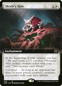 At the beginning of your upkeep, you lose 1 life and create a 1/1 colorless Phyrexian Mite artifact creature token with toxic 1 and "This token can't block." Corrupted — As long as an opponent has three or more poison counters, creatures you control with toxic have lifelink.