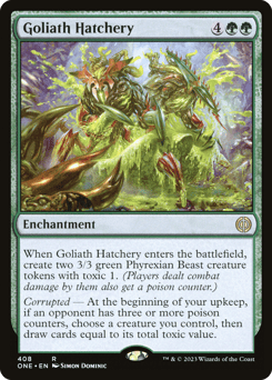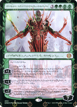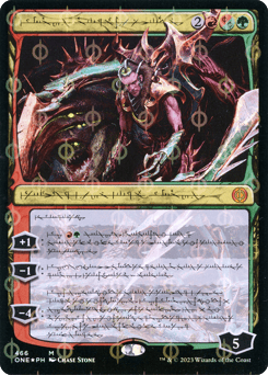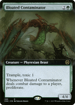 Trample Toxic 1 (Players dealt combat damage by this creature also get a poison counter.) Whenever this creature deals combat damage to a player, proliferate. (Choose any number of permanents and/or players, then give each another counter of each kind already there.)