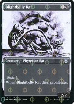 Toxic 1 (Players dealt combat damage by this creature also get a poison counter.) When this creature dies, proliferate. (Choose any number of permanents and/or players, then give each another counter of each kind already there.)