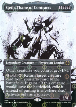 Other creatures you control get -1/-1. {1}{B}{B}, {T}: Return target creature card from your graveyard to the battlefield. It gains "If this creature would leave the battlefield, exile it instead of putting it anywhere else." Activate only as a sorcery.