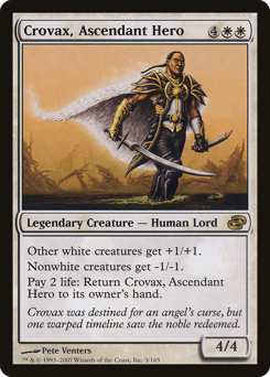 Other white creatures get +1/+1. Nonwhite creatures get -1/-1. Pay 2 life: Return Crovax to its owner's hand.