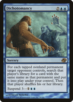 For each tapped nonland permanent target opponent controls, search that player's library for a card with the same name as that permanent. Put those cards onto the battlefield under your control, then that player shuffles. Suspend 3—{1}{U}{U} (Rather than cast this card from your hand, you may pay {1}{U}{U} and exile it with three time counters on it. At the beginning of your upkeep, remove a time counter. When the last is removed, you may cast it without paying its mana cost.)