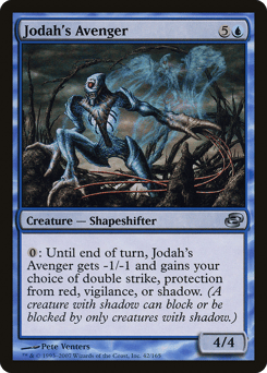 {0}: Until end of turn, this creature gets -1/-1 and gains your choice of double strike, protection from red, vigilance, or shadow. (A creature with shadow can block or be blocked by only creatures with shadow.)