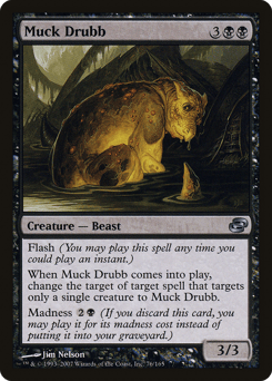 Flash When this creature enters, change the target of target spell that targets only a single creature to this creature. Madness {2}{B} (If you discard this card, discard it into exile. When you do, cast it for its madness cost or put it into your graveyard.)