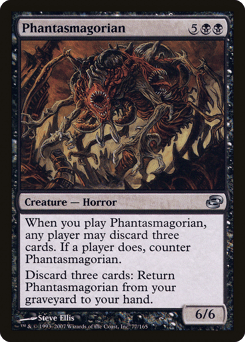 When you cast this spell, any player may discard three cards. If a player does, counter Phantasmagorian. Discard three cards: Return this card from your graveyard to your hand.