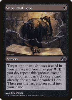 Target opponent chooses a card in your graveyard. You may pay {B}. If you do, repeat this process except that opponent can't choose a card already chosen for Shrouded Lore. Then put the last chosen card into your hand.
