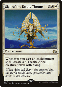 Whenever you cast an enchantment spell, create a 4/4 white Angel creature token with flying.