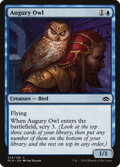 Flying When this creature enters, scry 3. (Look at the top three cards of your library, then put any number of them on the bottom and the rest on top in any order.)