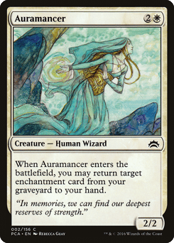 Search your library for up to three Aura cards with different names, reveal them, put them into your hand, then shuffle.