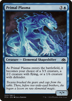 As this creature enters, it becomes your choice of a 3/3 creature, a 2/2 creature with flying, or a 1/6 creature with defender.