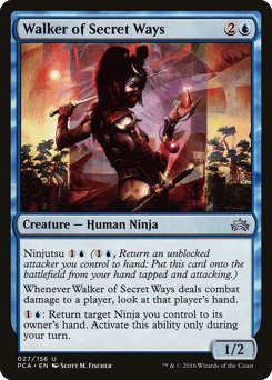 Ninjutsu {U} ({U}, Return an unblocked attacker you control to hand: Put this card onto the battlefield from your hand tapped and attacking.) Whenever this creature deals combat damage to a player, you may return target creature that player controls to its owner's hand.