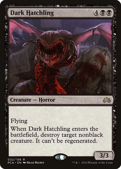 Flying When this creature enters, destroy target nonblack creature. It can't be regenerated.