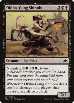 Ninjutsu {3}{B} ({3}{B}, Return an unblocked attacker you control to hand: Put this card onto the battlefield from your hand tapped and attacking.) Whenever this creature deals combat damage to a player, that player discards two cards.