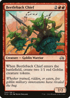 When this creature enters, create two 1/1 red Goblin creature tokens.