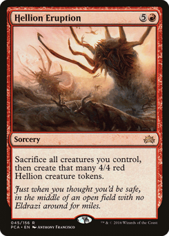 Sacrifice all creatures you control, then create that many 4/4 red Hellion creature tokens.