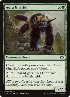 Creatures with power less than this creature's power can't block it. This creature gets +1/+1 for each Aura on the battlefield.