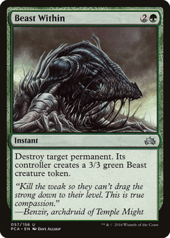 Destroy target permanent. Its controller creates a 3/3 green Beast creature token.