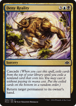 Cascade (When you cast this spell, exile cards from the top of your library until you exile a nonland card that costs less. You may cast it without paying its mana cost. Put the exiled cards on the bottom in a random order.) Return target permanent to its owner's hand.