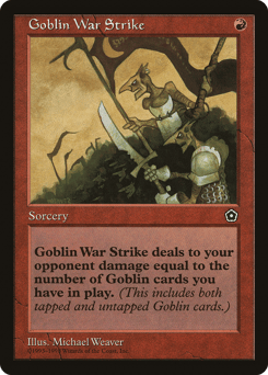 Goblin War Strike deals damage to target player or planeswalker equal to the number of Goblins you control.