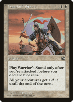 Cast this spell only during the declare attackers step and only if you've been attacked this step. Creatures you control get +2/+2 until end of turn.