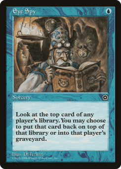 Look at the top card of target player's library. You may put that card into their graveyard.