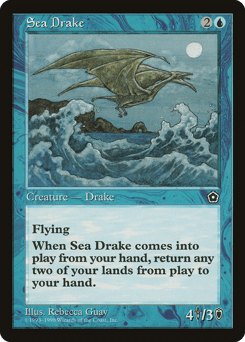 Flying When this creature enters, return two target lands you control to their owner's hand.