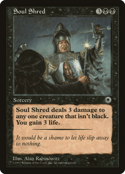 Soul Shred deals 3 damage to target nonblack creature. You gain 3 life.