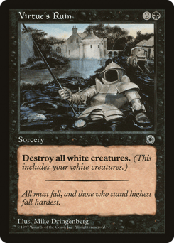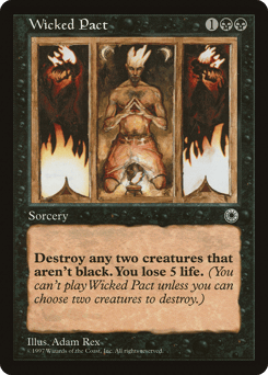 Destroy two target nonblack creatures. You lose 5 life.
