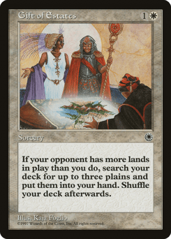 If an opponent controls more lands than you, search your library for up to three Plains cards, reveal them, put them into your hand, then shuffle.