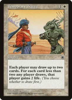 Each player may draw up to two cards. For each card less than two a player draws this way, that player gains 2 life.