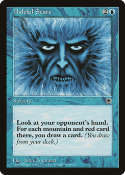 Target opponent reveals their hand. You draw a card for each Mountain and red card in it.