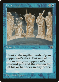 Look at the top five cards of target opponent's library. Put one of those cards into that player's graveyard and the rest on top of their library in any order.